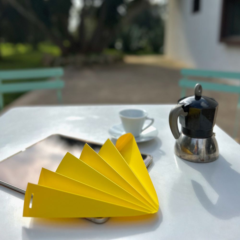 | Faltfächer gelb opak | Größe: ca. 20 x 5 x 2 cm im geschlossenen Zustand, ca. 20 x 35 cm im geöffneten Zustand. |